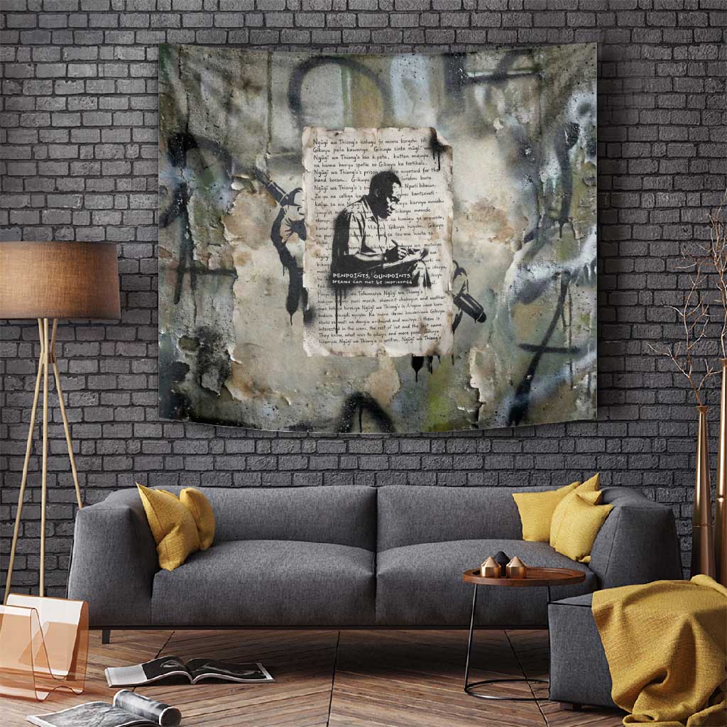 Ngugi wa Thiong O Tapestry Graffiti Resist Statement Ink Pen Revolution Fist Literary Activism