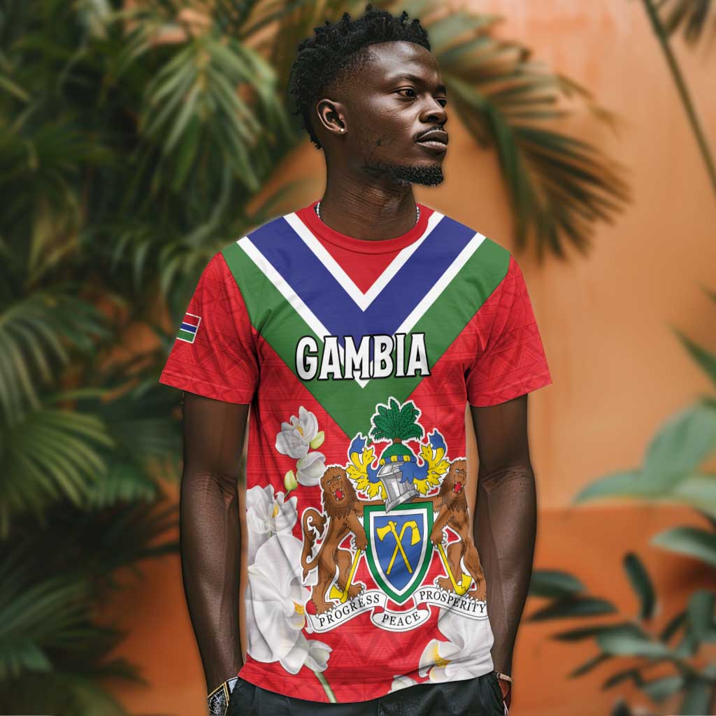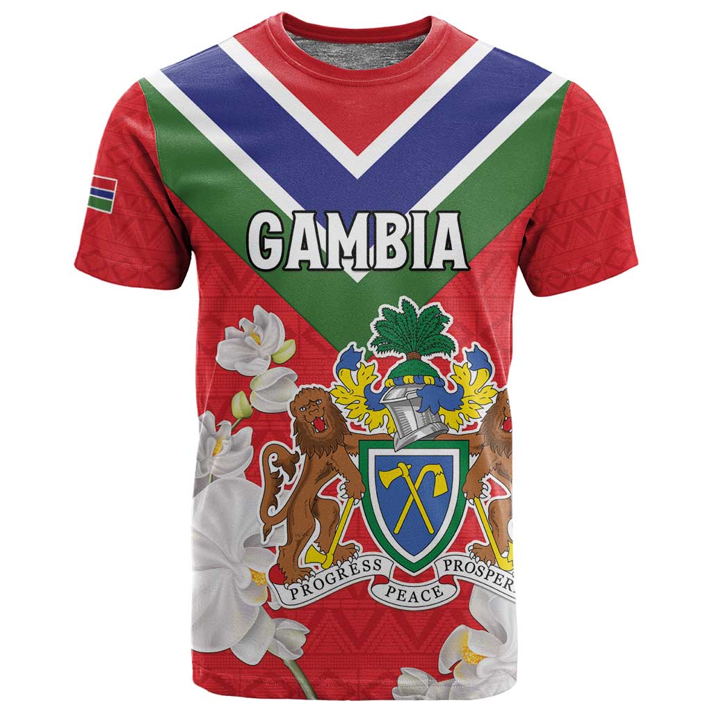 Personalized Gambia T shirt Coat Of Arms - African Pattern