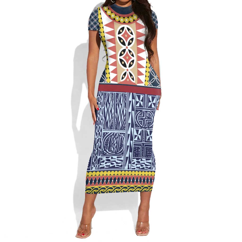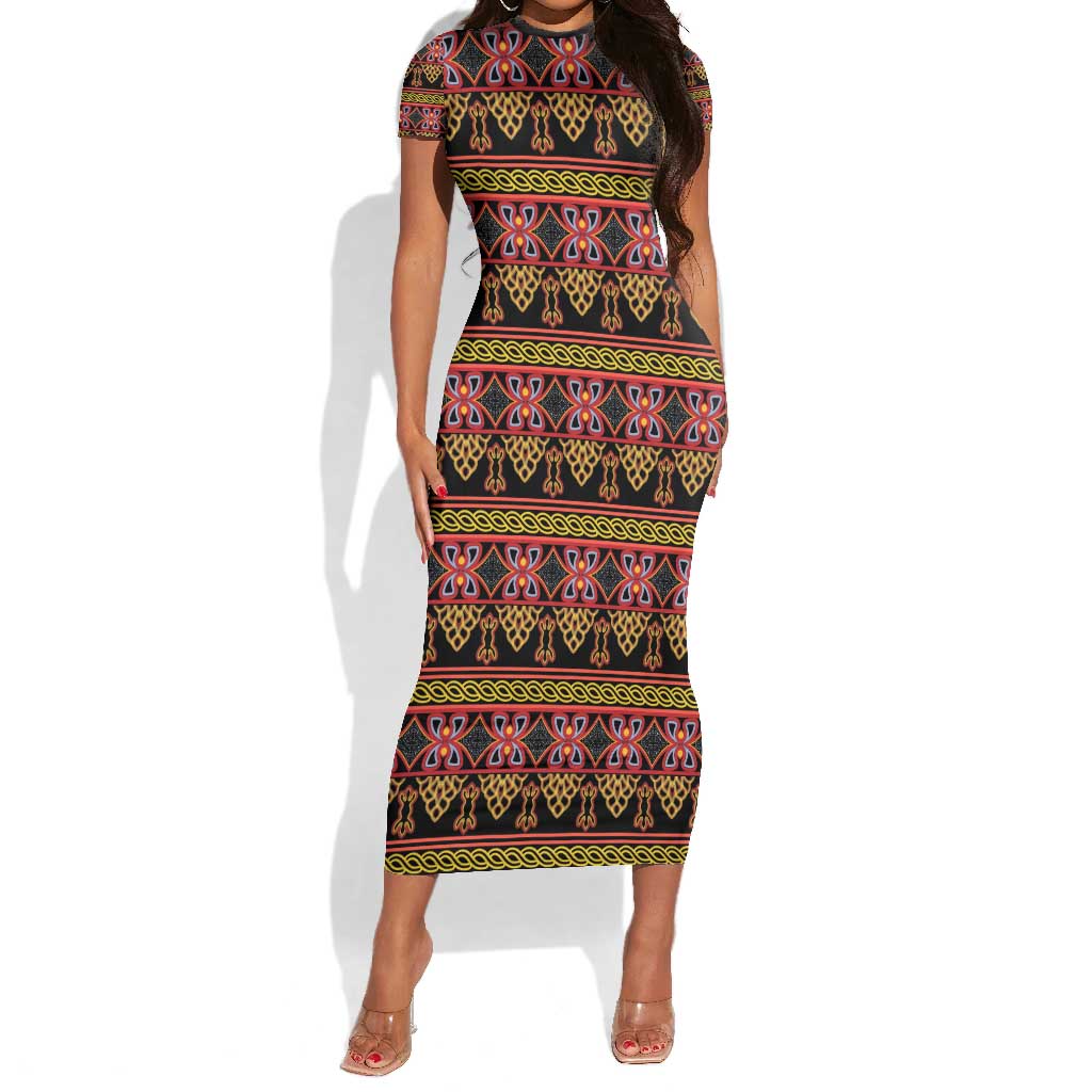 Toghu Cameroon Long Sleeve Bodycon Dress Traditional Pattern