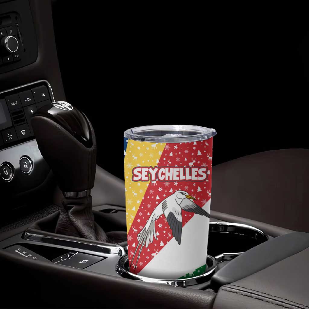 Seychelles Christmas Tumbler Cup Flag Colors Tropical Bird Motif and National Coat of Arms
