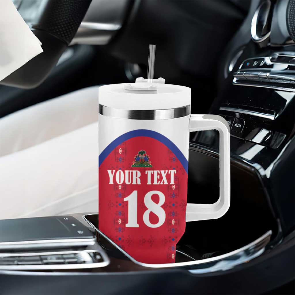 Custom Afro-Haitians Football Pride Tumbler With Handle Les Grenadiers Veve Vodou Red Version
