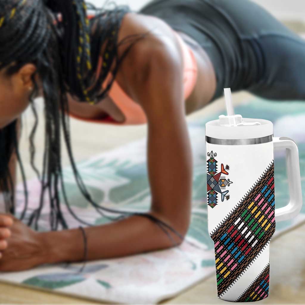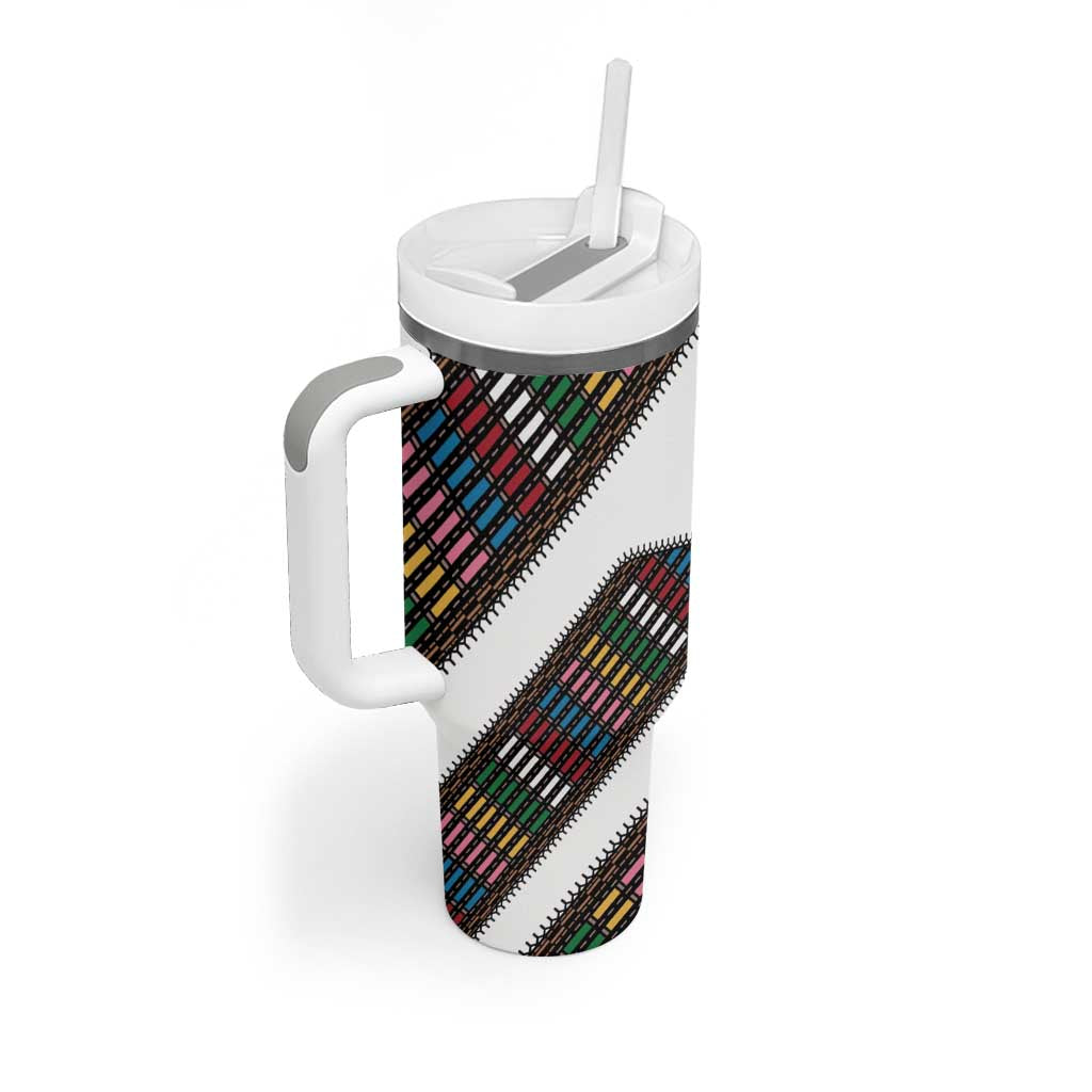 Habesha Kemis Inspired Tilet Pattern Tumbler With Handle White