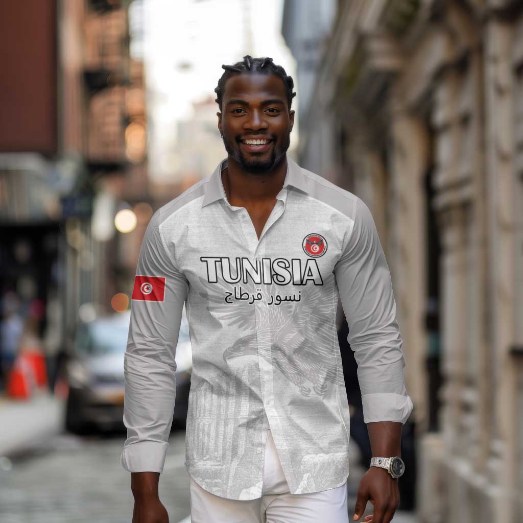Custom Tunisia Football Long Sleeve Button Shirt Eagles of Carthage Go Champion - White Color
