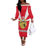 Tunisia Independence Day Off The Shoulder Long Sleeve Dress with Coat of Arms and Flag Style
