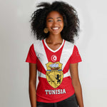 Tunisia Independence Day Women V-Neck T-Shirt with Coat of Arms and Flag Style