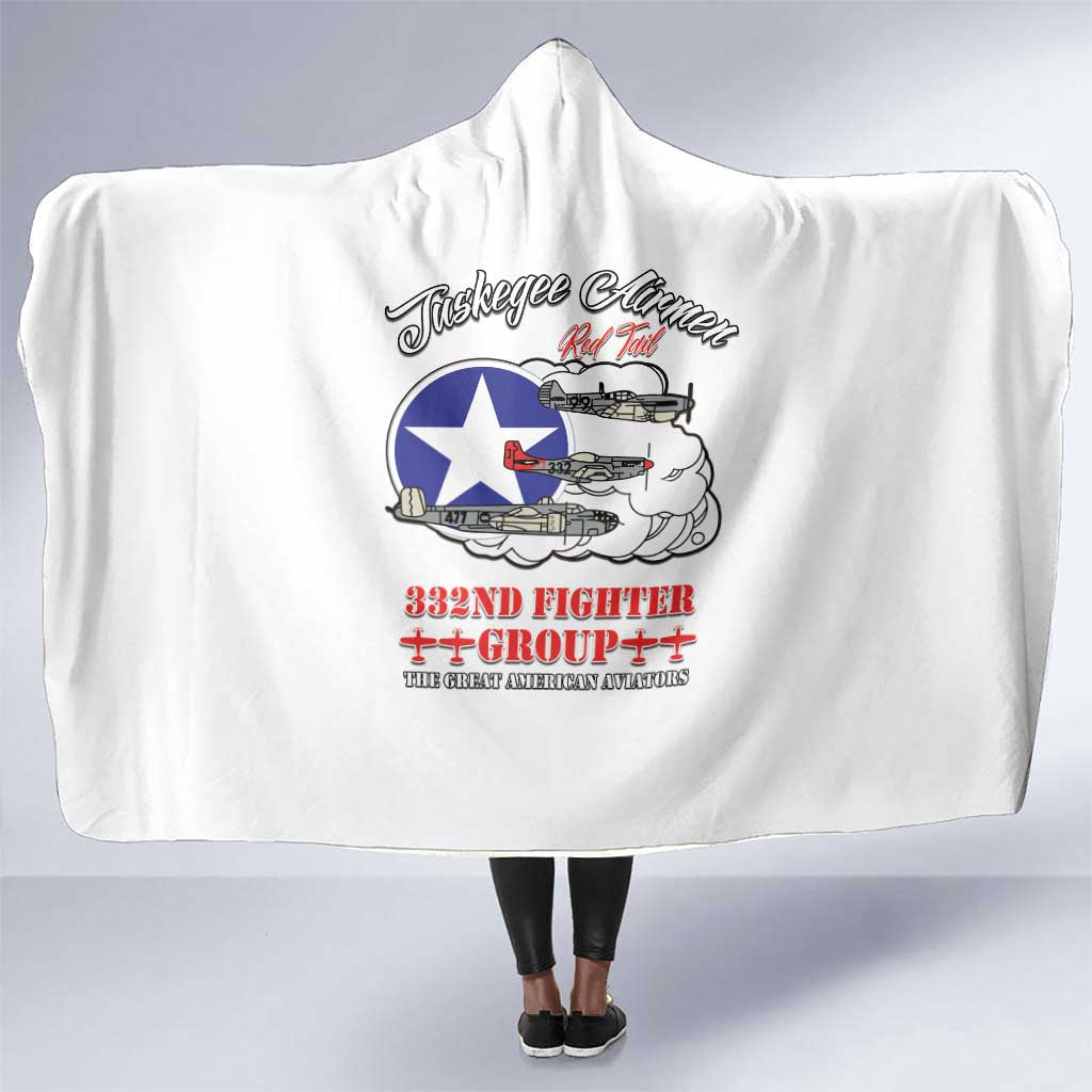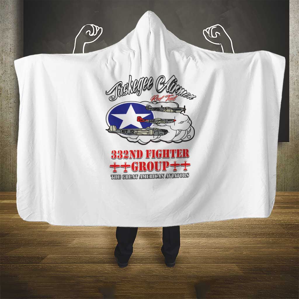 African American Aviators WWII Hooded Blanket Tuskegee Red Tails Airmen White