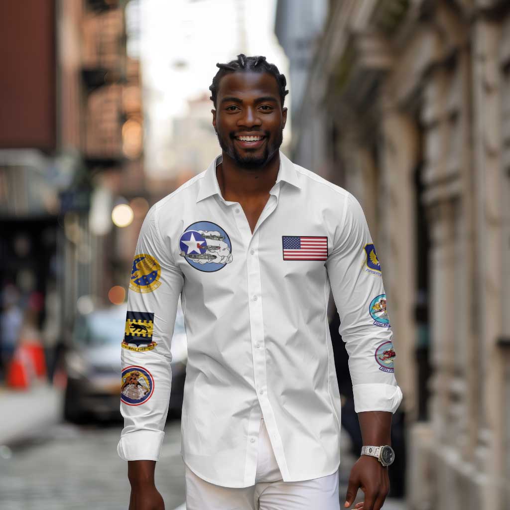 African American Aviators WWII Long Sleeve Button Shirt Tuskegee Red Tails Airmen White