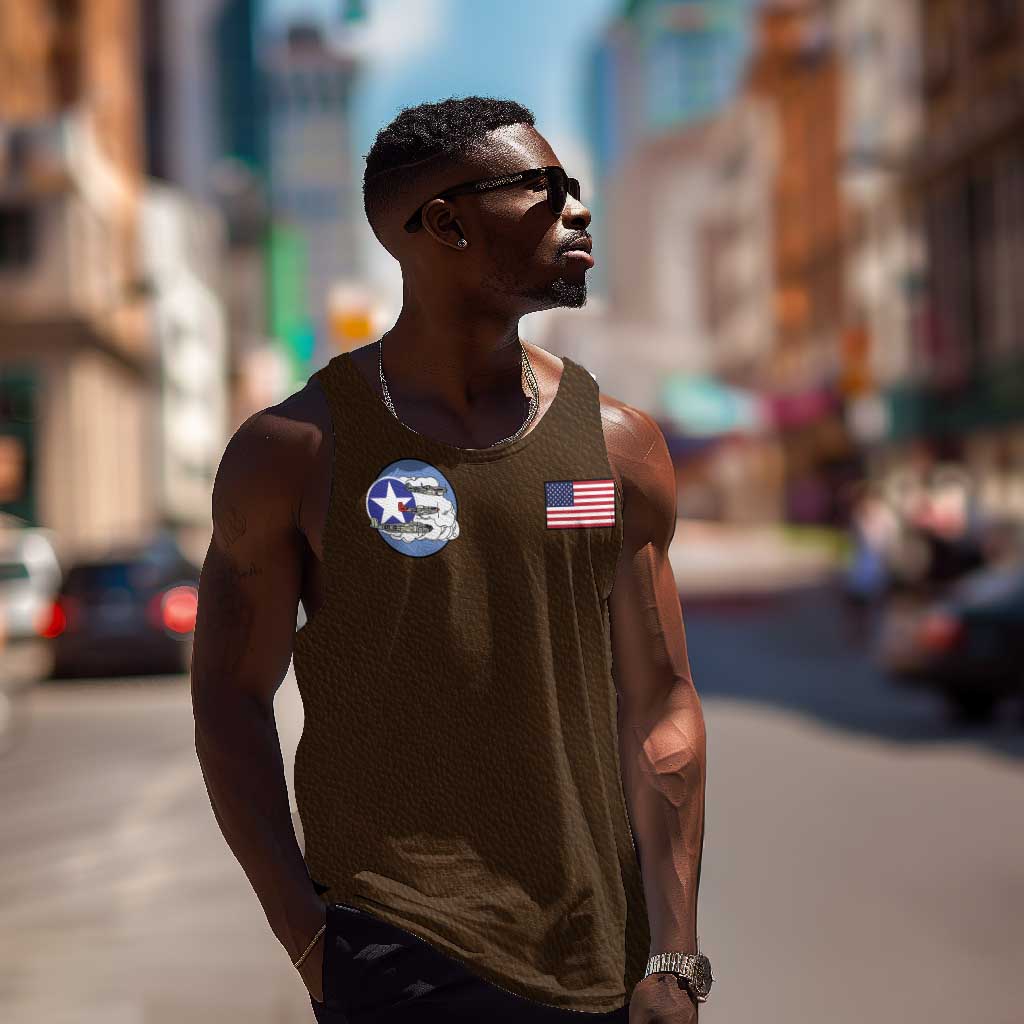 African American Aviators WWII Men Tank Top Tuskegee Red Tails Airmen Brown Leather Pattern