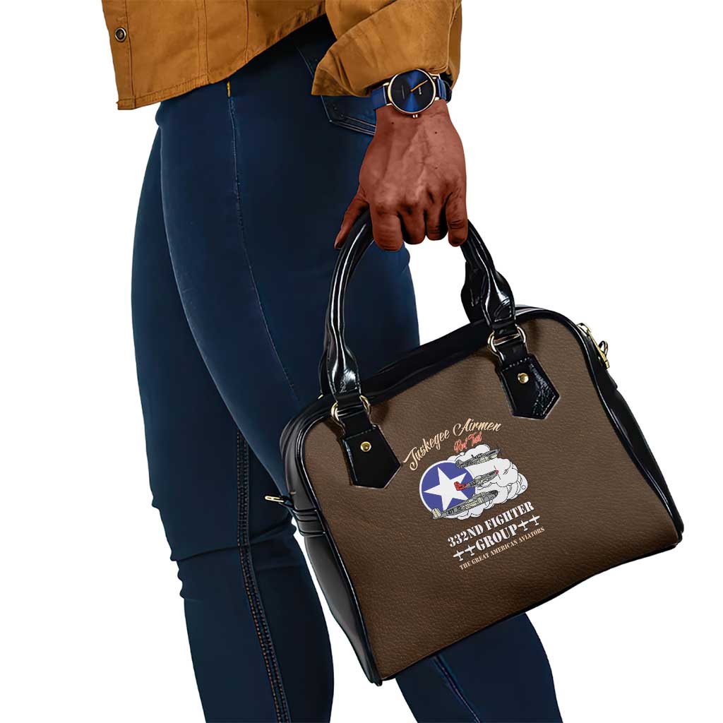 African American Aviators WWII Shoulder Handbag Tuskegee Red Tails Airmen Brown Leather Pattern