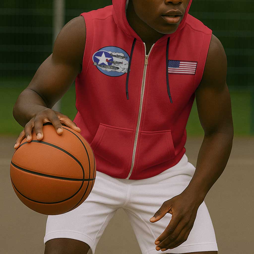 African American Aviators WWII Sleeveless Zip Hoodie Tuskegee Red Tails Airmen Red
