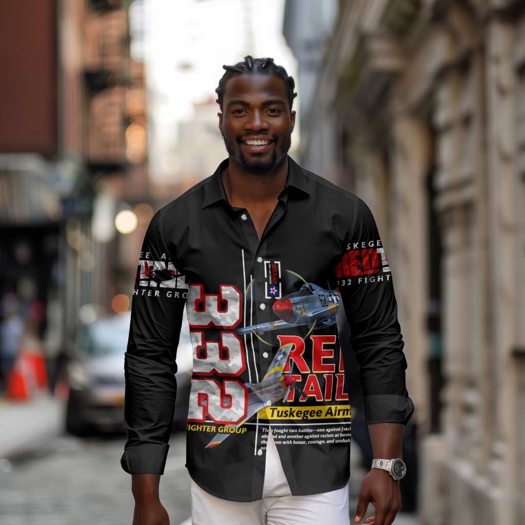 Red Tails Tuskegee Airmen Long Sleeve Button Shirt 332nd Fighter Group WWII Legacy Tribute