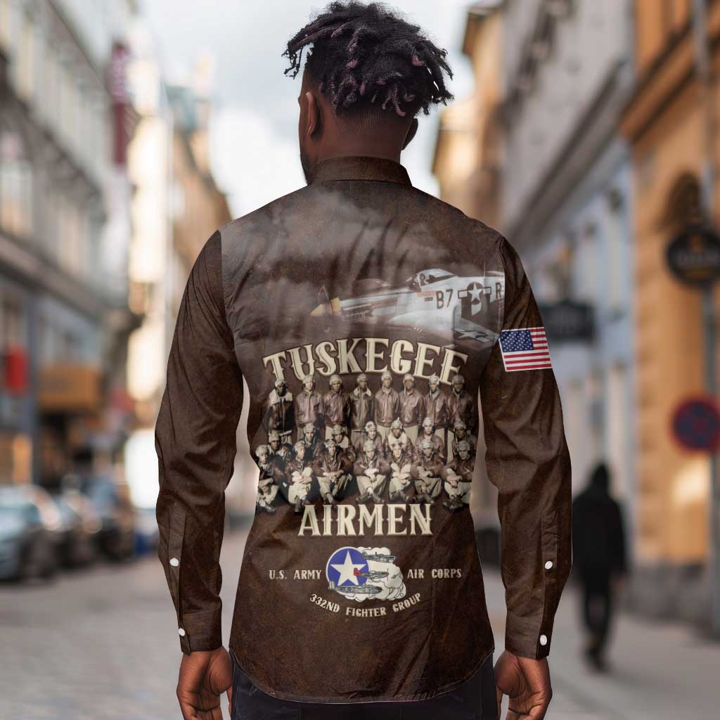 Remembering the Red Tail Heroes Long Sleeve Button Shirt Tuskegee Airmen Legacy Retro Style