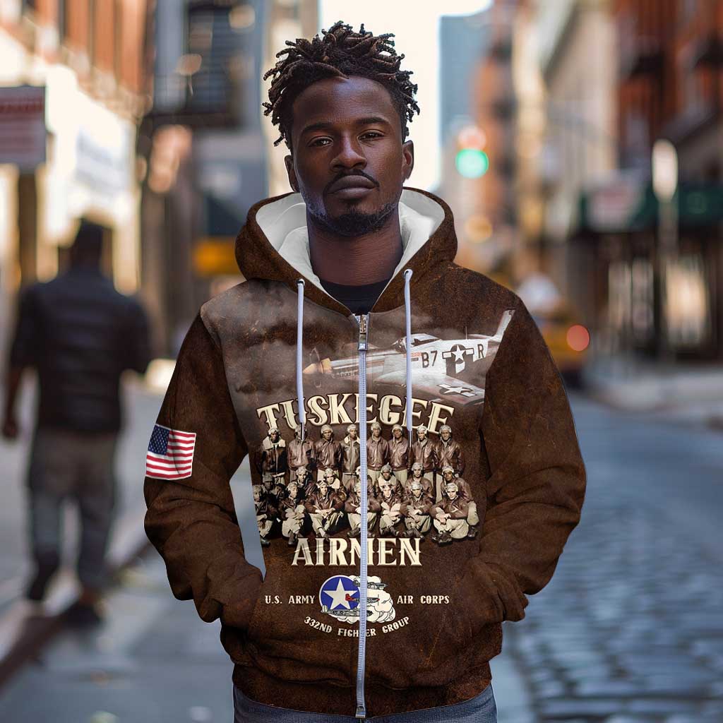 Remembering the Red Tail Heroes Zip Hoodie Tuskegee Airmen Legacy Retro Style