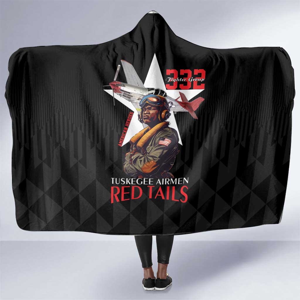 Tuskegee Airmen Red Tails Legacy Hooded Blanket African American Pilots - Black