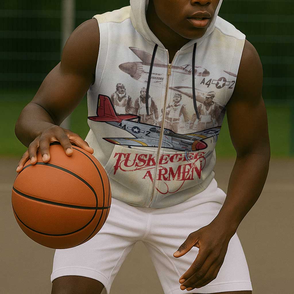 Tuskegee Airmen Sleeveless Zip Hoodie Red Tails Legacy Retro Style
