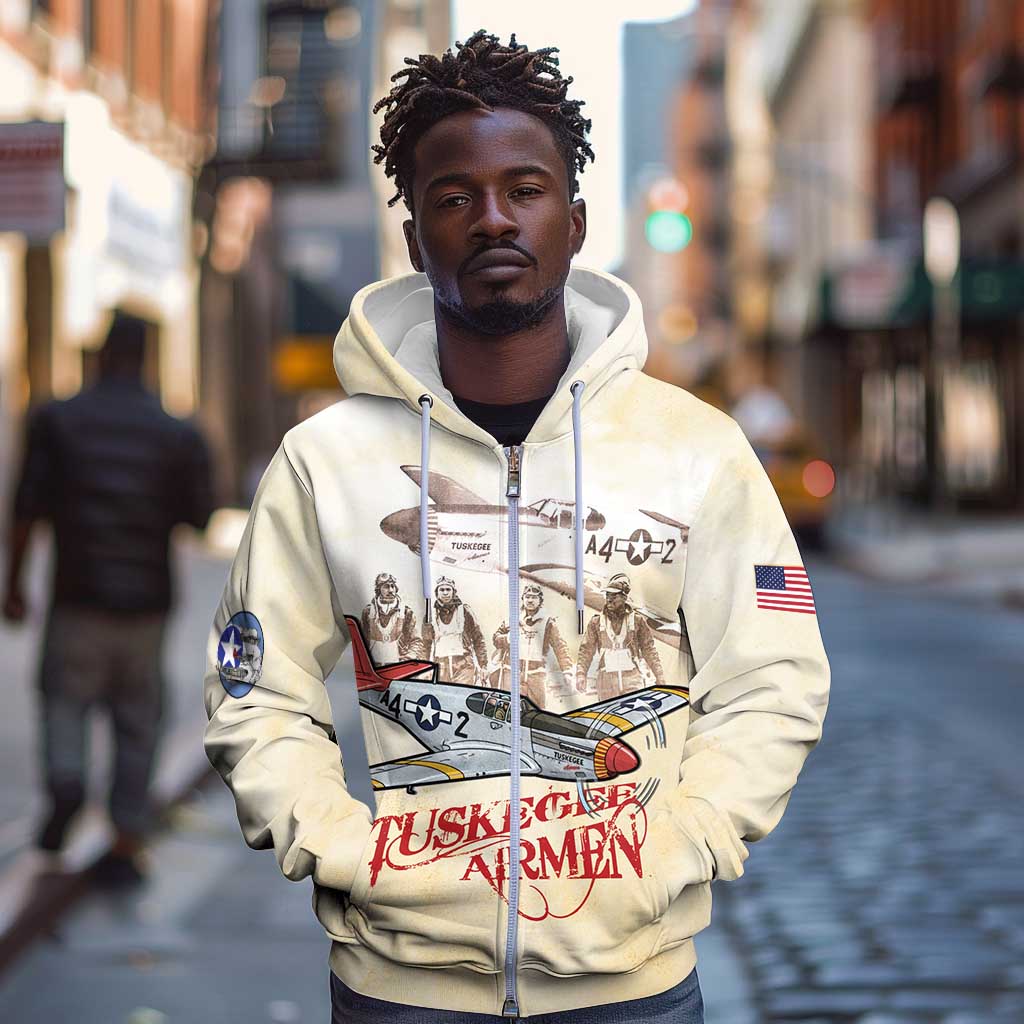 Tuskegee Airmen Zip Hoodie Red Tails Legacy Retro Style