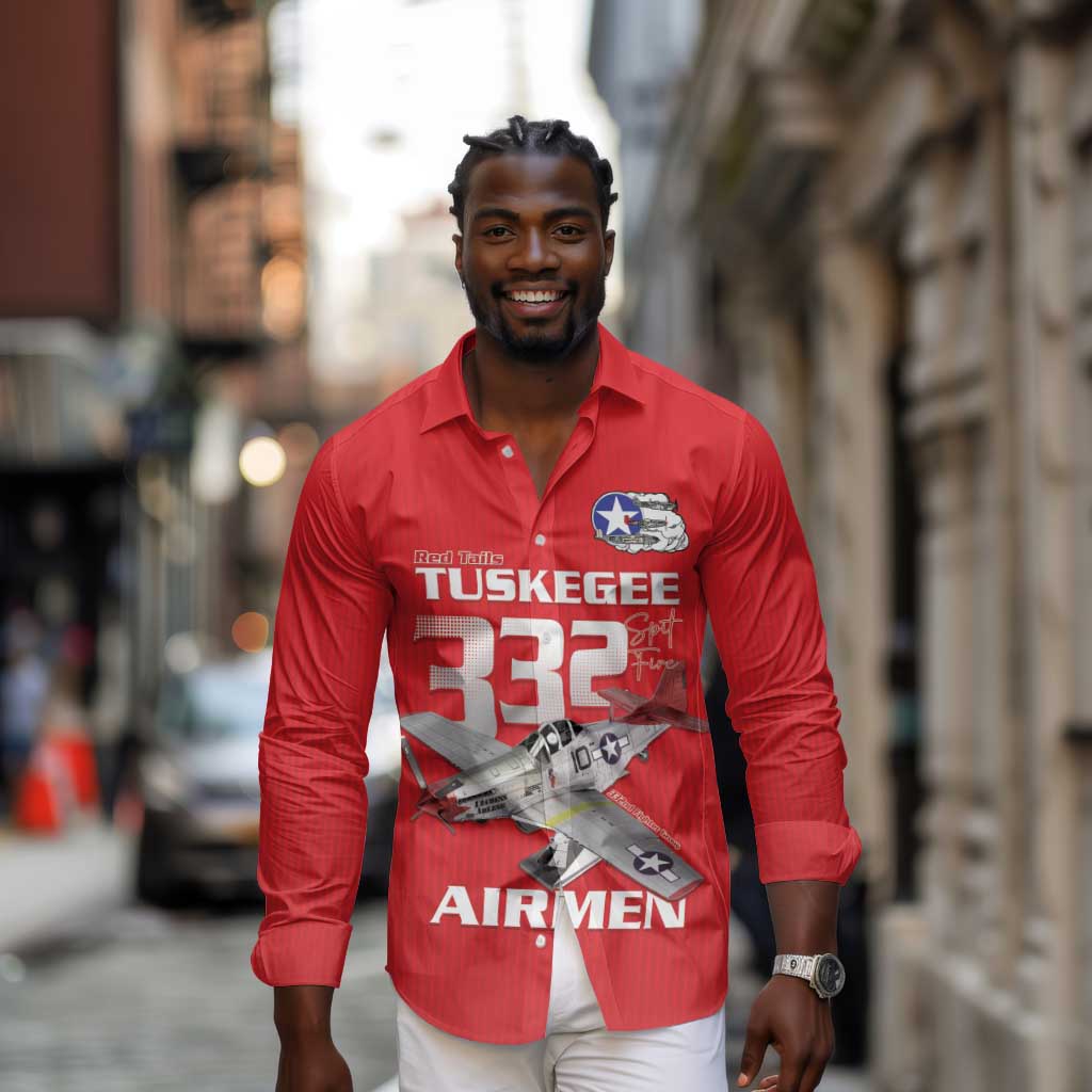 Tuskegee Red Tails Airmen Long Sleeve Button Shirt 332nd Fighter Group - Red