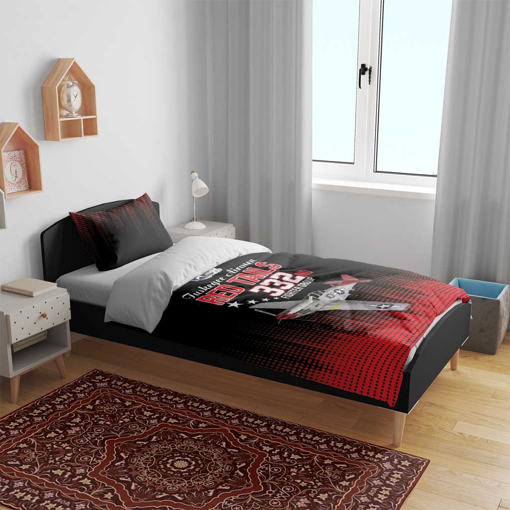 Tuskegee Red Tails Airmen WWII Tribute Bedding Set 332nd Fighter Group - Black