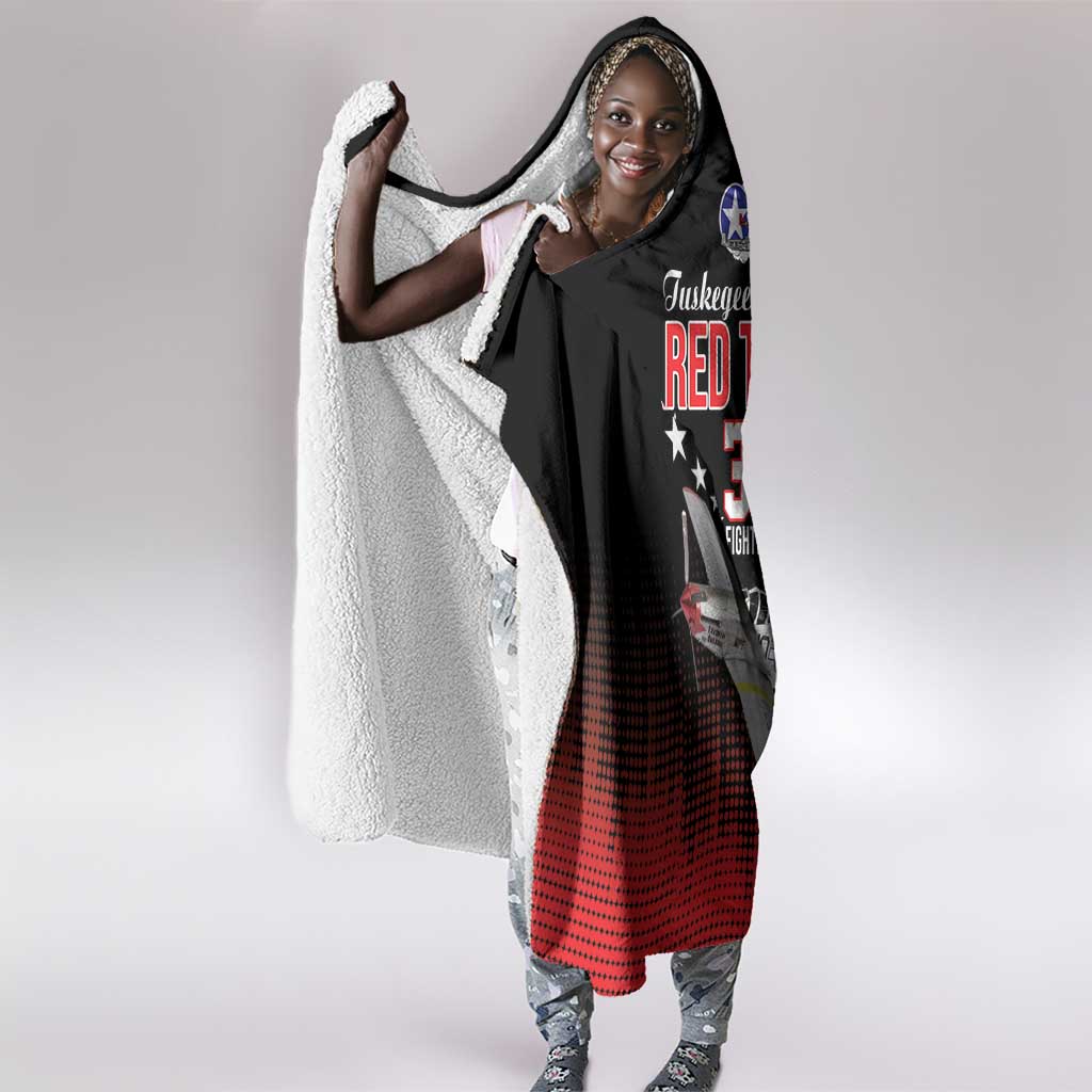 Tuskegee Red Tails Airmen WWII Tribute Hooded Blanket 332nd Fighter Group - Black