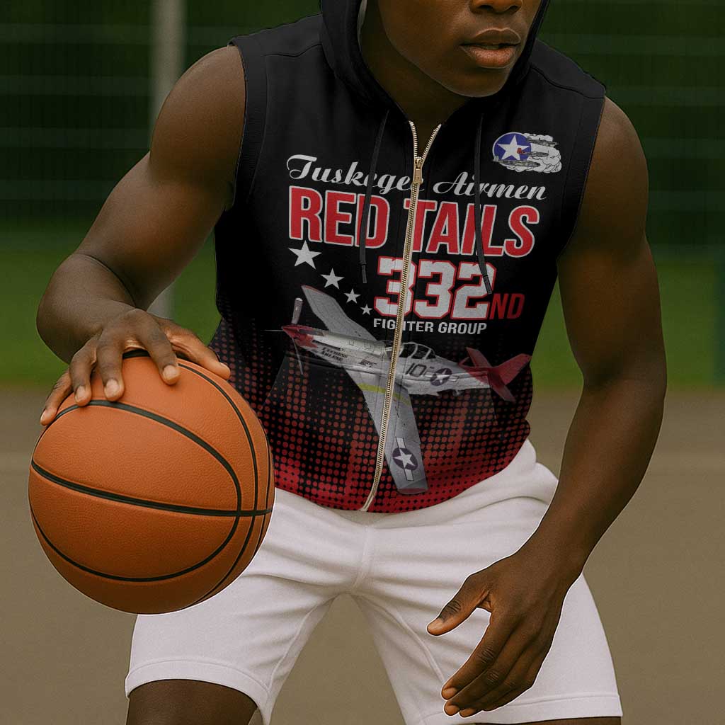 Tuskegee Red Tails Airmen WWII Tribute Sleeveless Zip Hoodie 332nd Fighter Group - Black