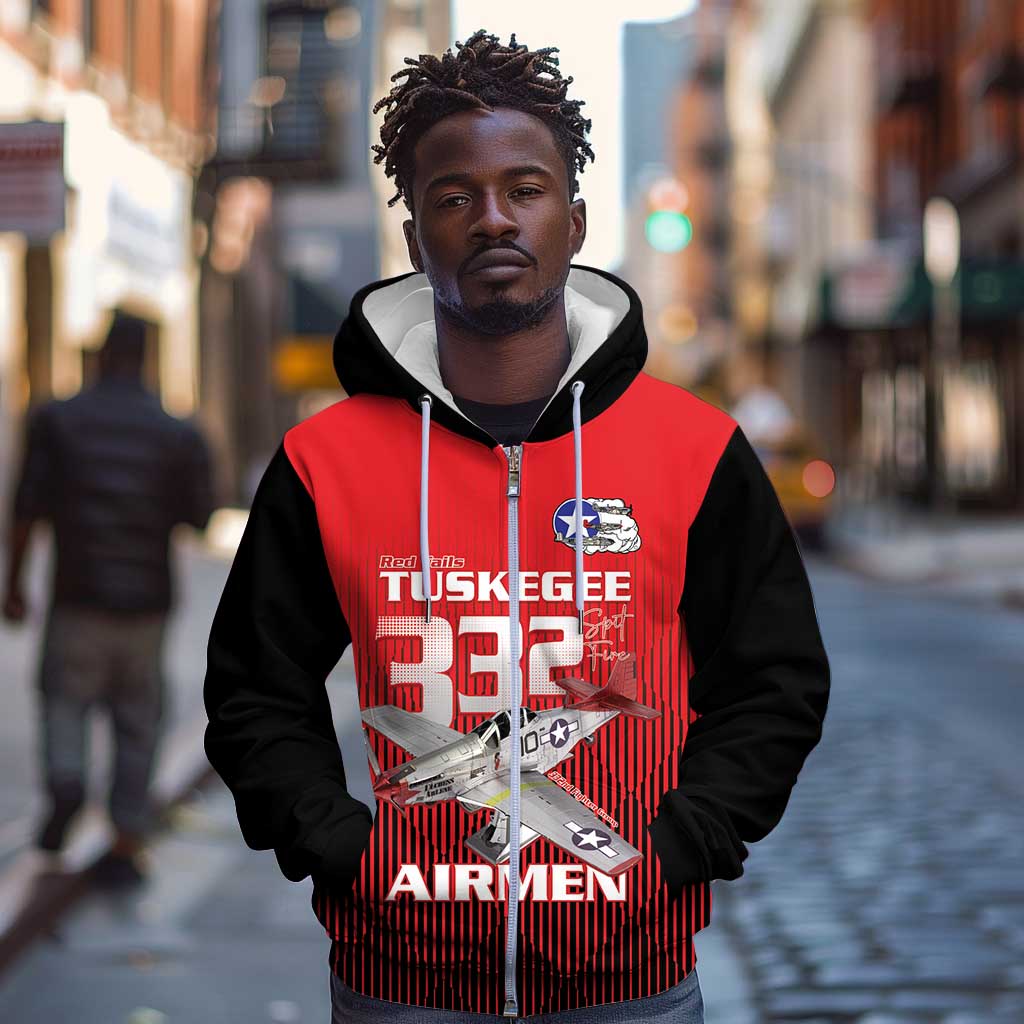 Tuskegee Red Tails Airmen Zip Hoodie 332nd Fighter Group - Black Red LT15