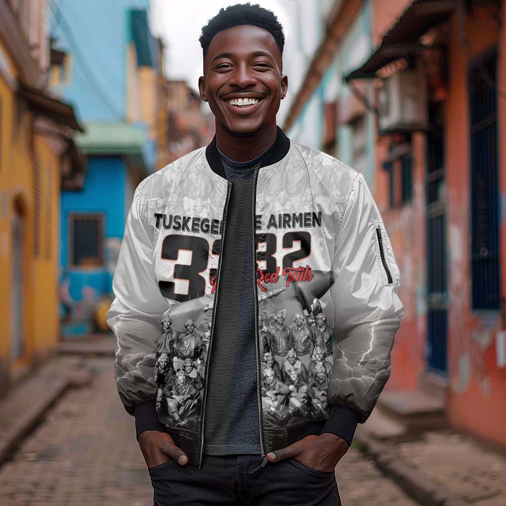 Tuskegee Airmen Red Tails Pride Sleeve Zip Bomber Jacket 332nd Fighter Group
