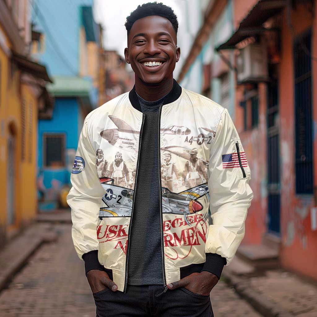 Tuskegee Airmen Sleeve Zip Bomber Jacket Red Tails Legacy Retro Style