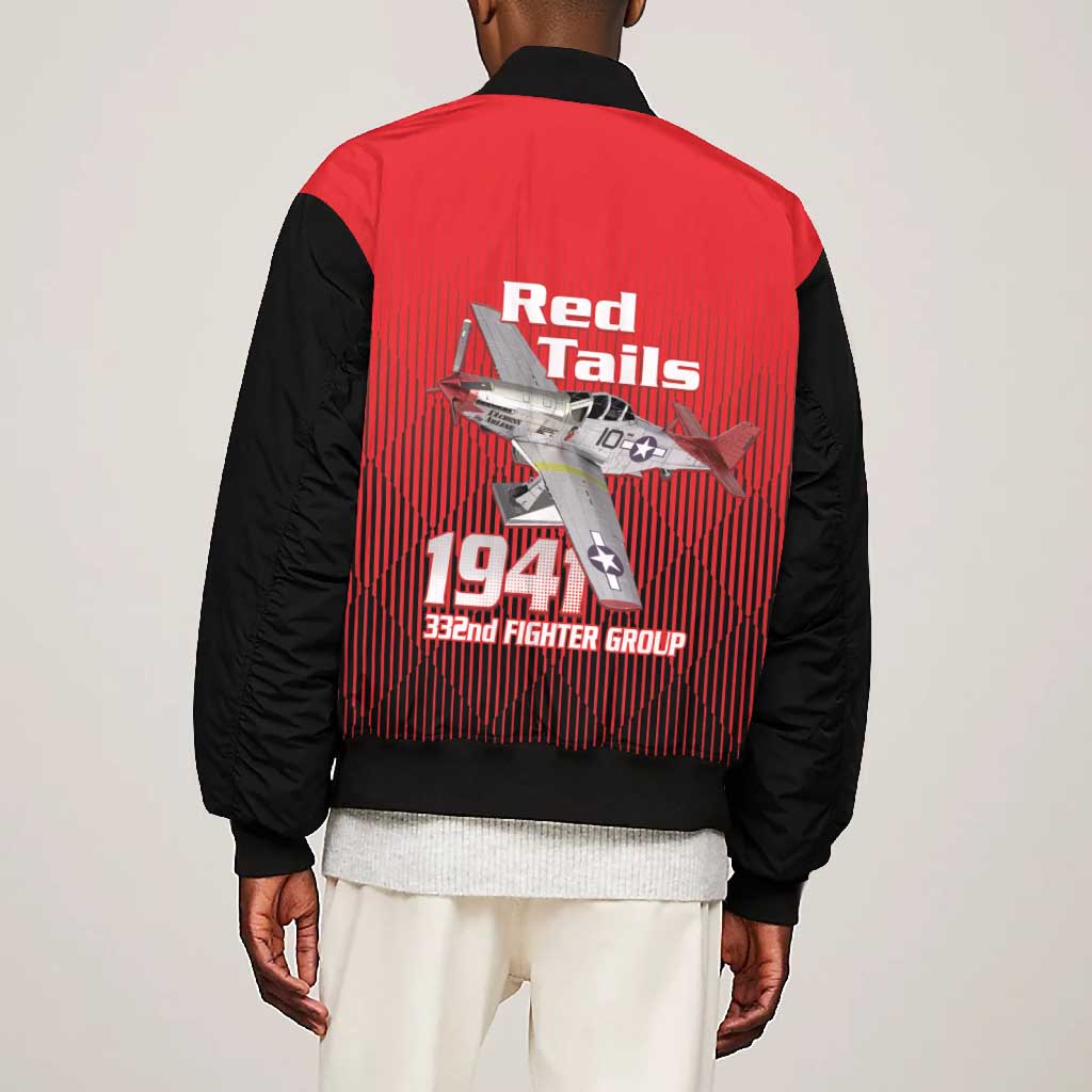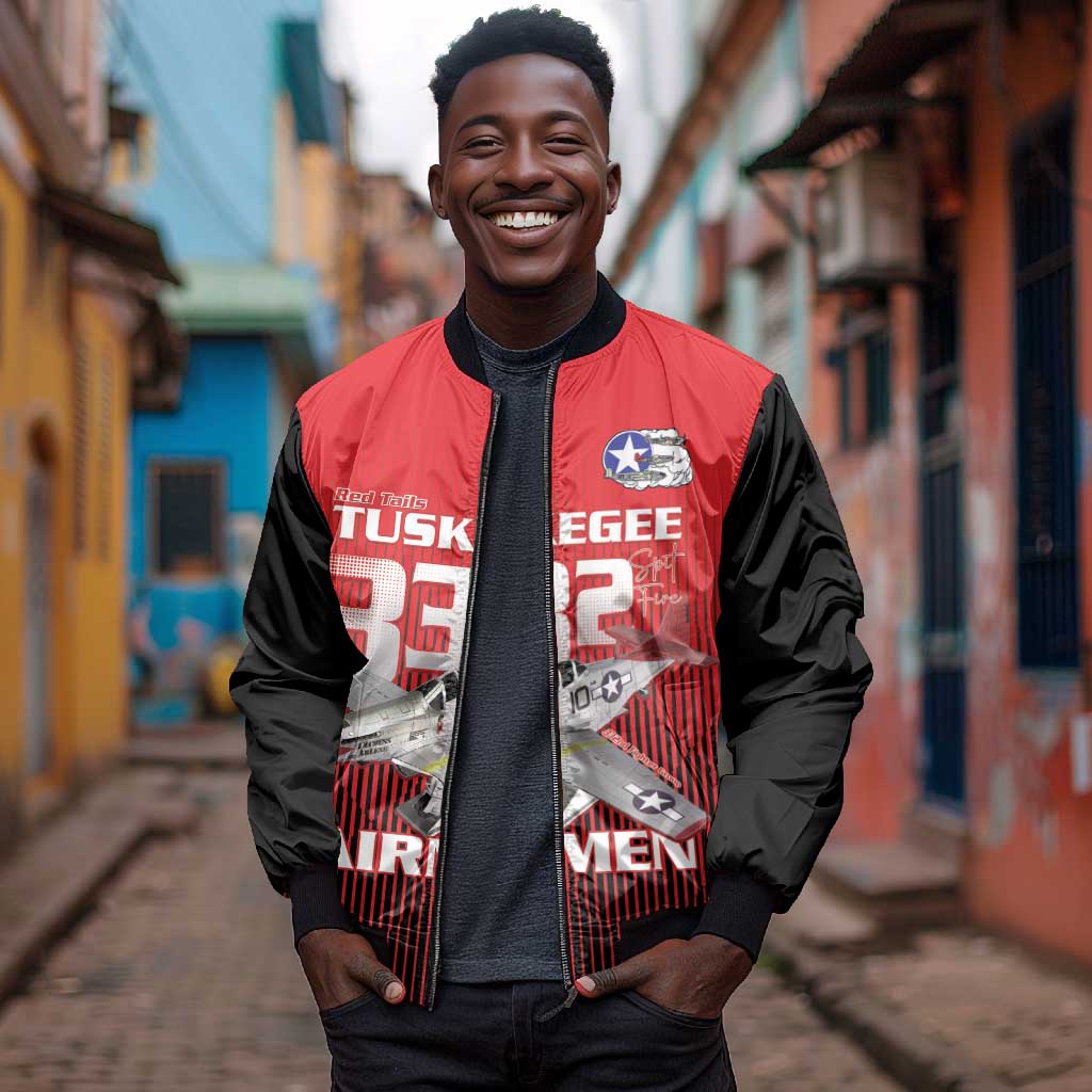 Tuskegee Red Tails Airmen Bomber Jacket 332nd Fighter Group - Black Red