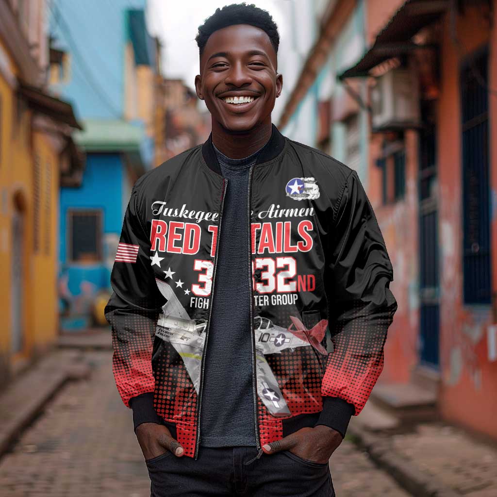 Tuskegee Red Tails Airmen WWII Tribute Bomber Jacket 332nd Fighter Group - Black