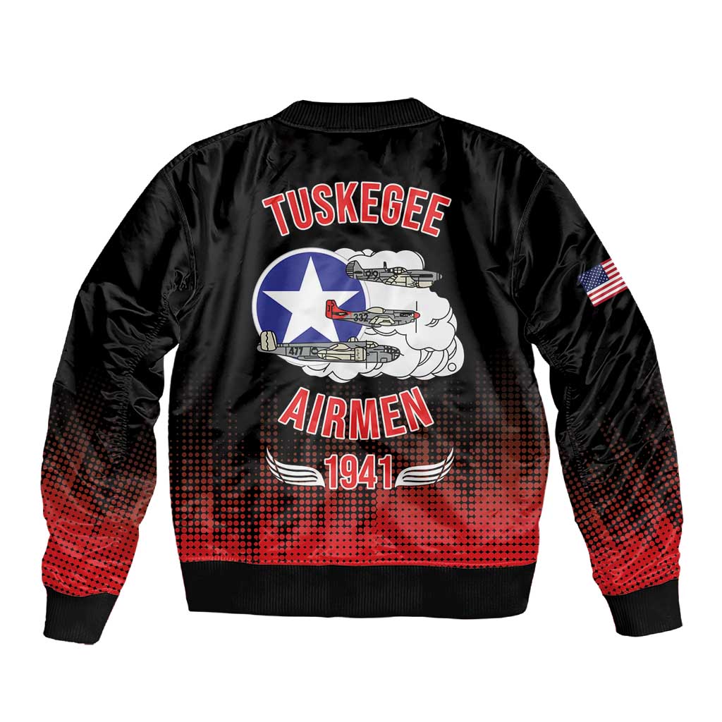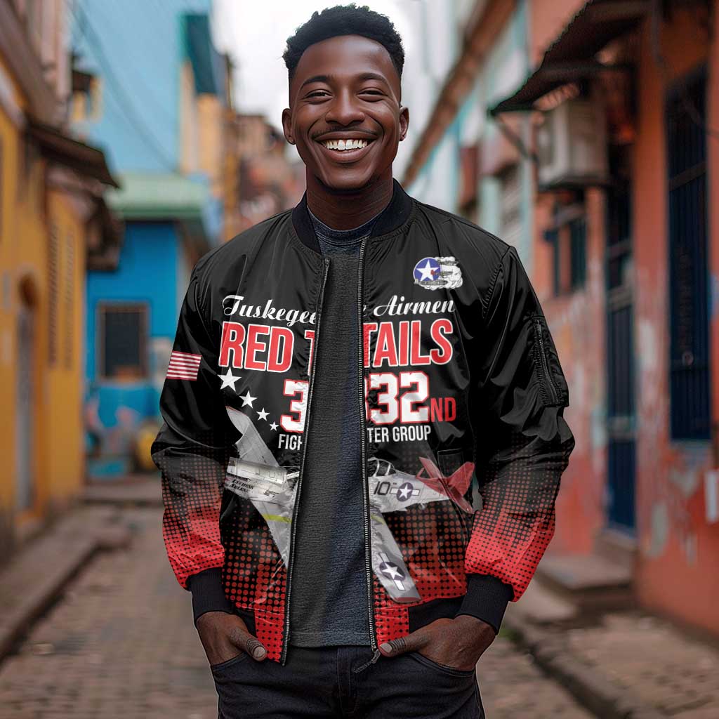 Tuskegee Red Tails Airmen WWII Tribute Sleeve Zip Bomber Jacket 332nd Fighter Group - Black