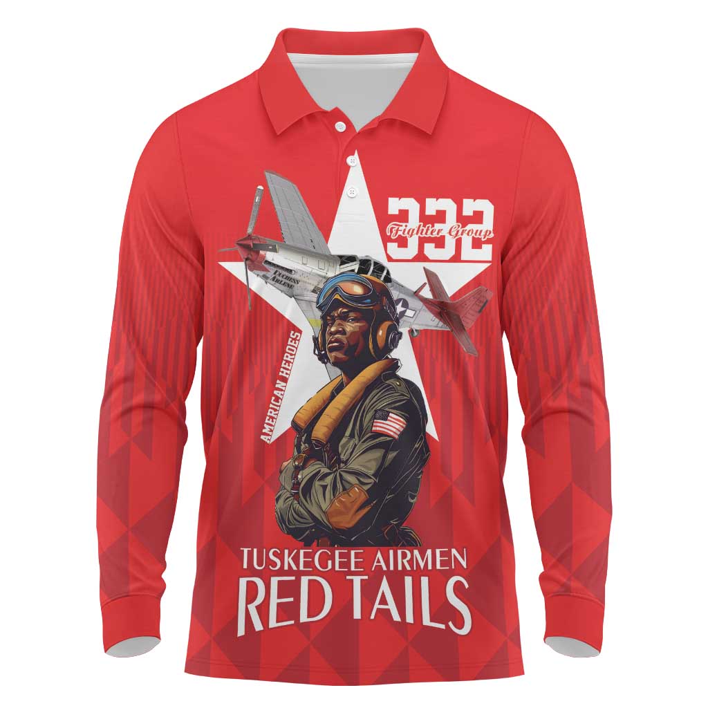 Tuskegee Airmen Red Tails Legacy Long Sleeve Polo Shirt African American Pilots - Red
