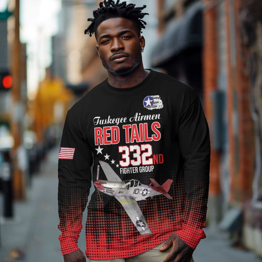 Tuskegee Red Tails Airmen WWII Tribute Long Sleeve Shirt 332nd Fighter Group - Black LT18