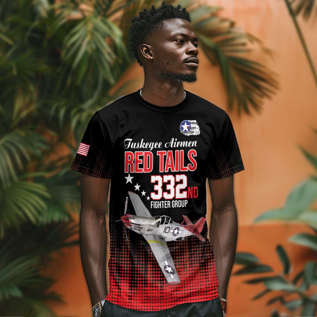 Tuskegee Red Tails Airmen WWII Tribute T shirt 332nd Fighter Group - Black