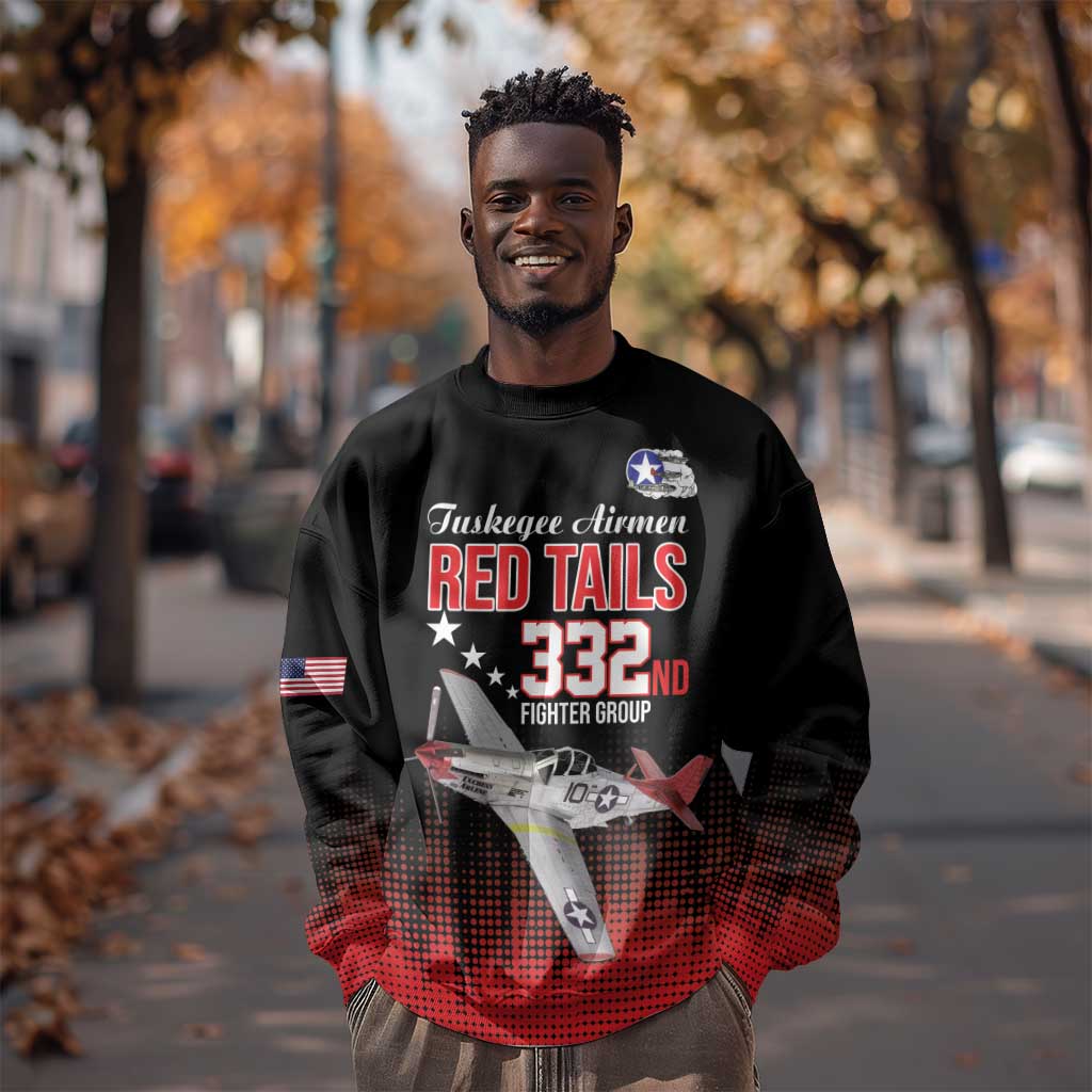 Tuskegee Red Tails Airmen WWII Tribute Sweatshirt 332nd Fighter Group - Black