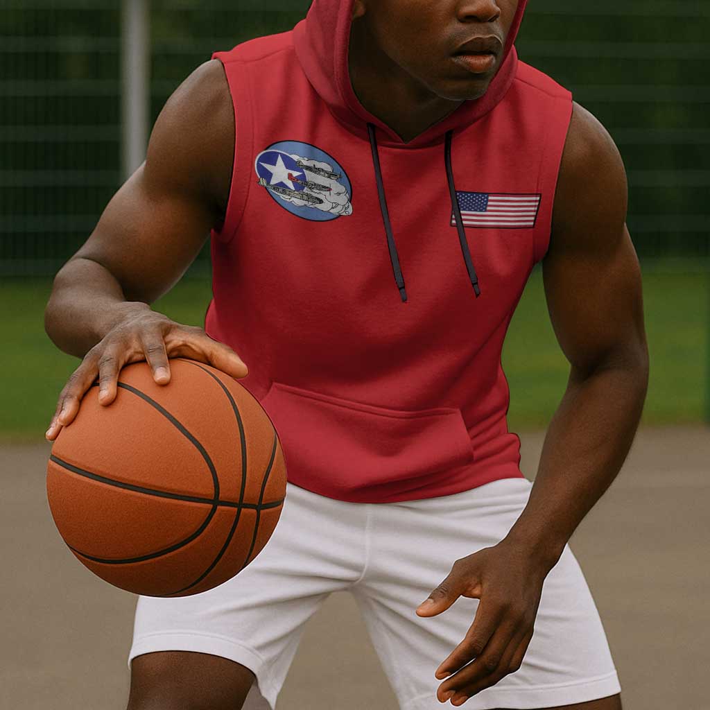 African American Aviators WWII Sleeveless Hoodie Tuskegee Red Tails Airmen Red