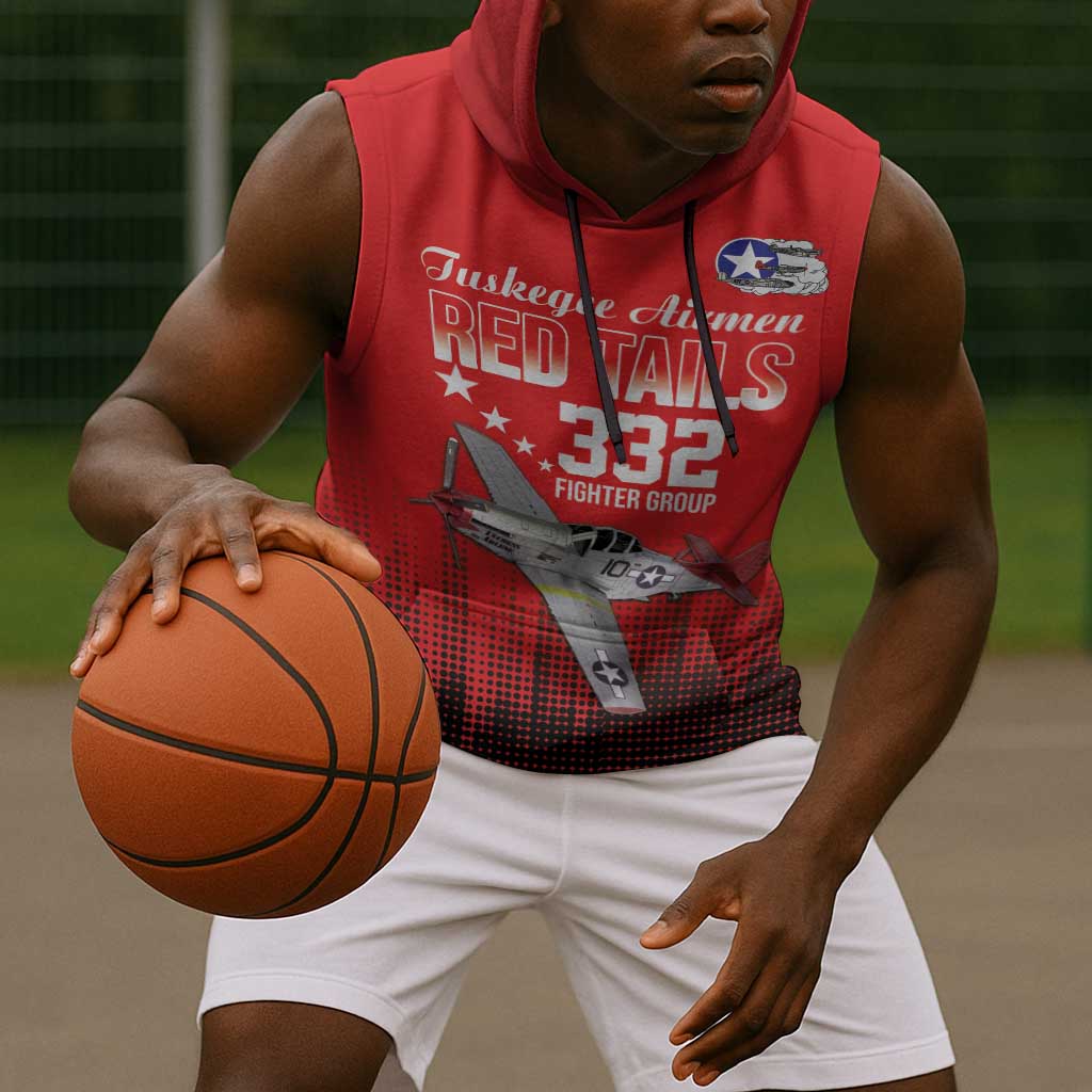 Tuskegee Red Tails Airmen WWII Tribute Sleeveless Hoodie 332nd Fighter Group - Red