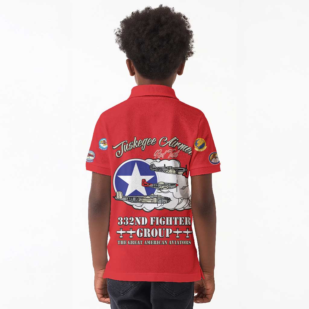 African American Aviators WWII Kid Polo Shirt Tuskegee Red Tails Airmen Red