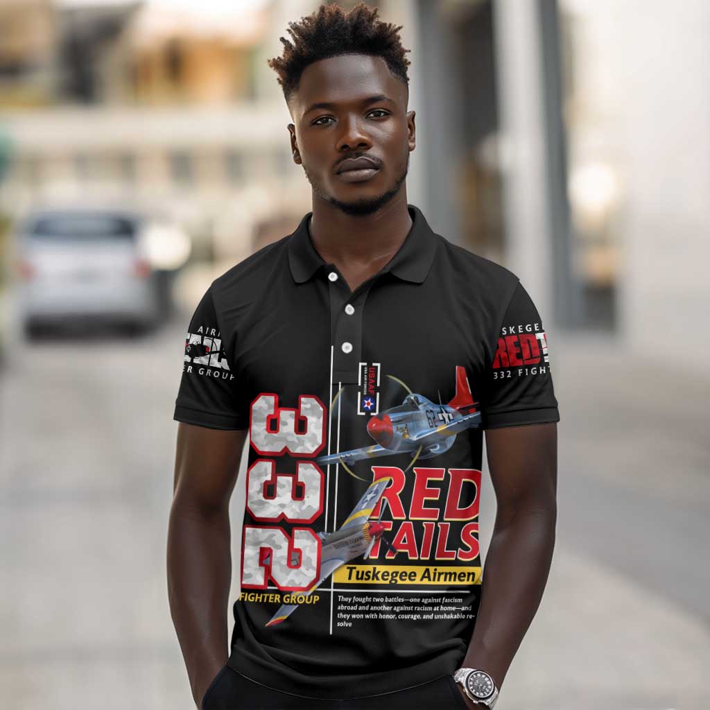Red Tails Tuskegee Airmen Polo Shirt 332nd Fighter Group WWII Legacy Tribute