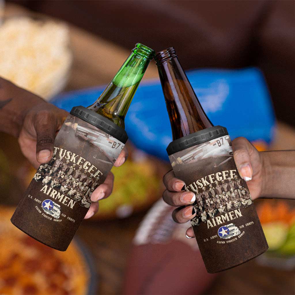 Remembering the Red Tail Heroes 4 in 1 Can Cooler Tumbler Tuskegee Airmen Legacy Retro Style