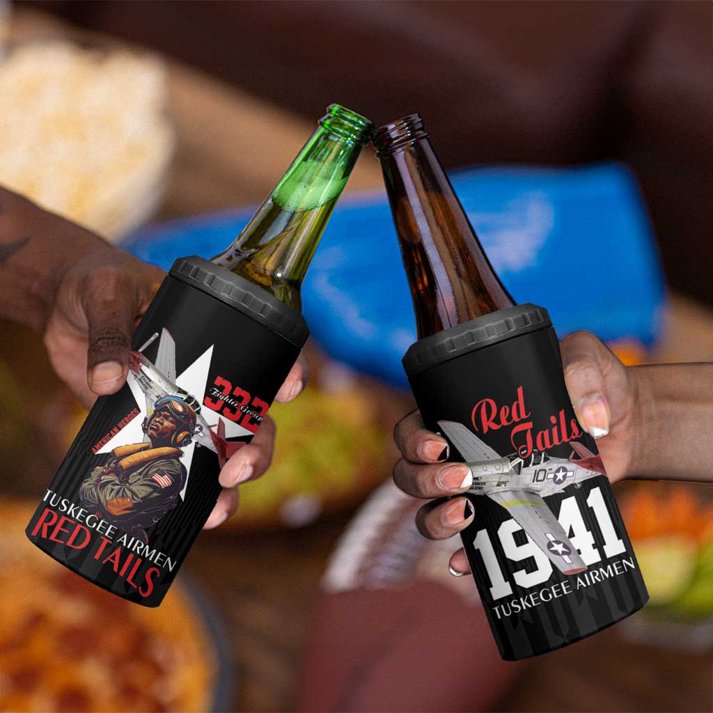 Tuskegee Airmen Red Tails Legacy 4 in 1 Can Cooler Tumbler African American Pilots - Black