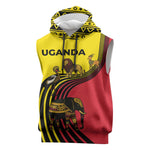 Uganda Sleeveless Hoodie - African Wildlife Elephant Lion and Crane in Tribal Pattern Design