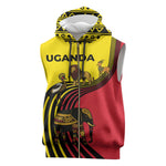 Uganda Sleeveless Zip Hoodie - African Wildlife Elephant Lion and Crane in Tribal Pattern Design