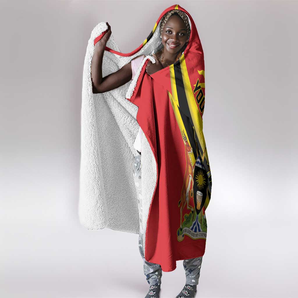 Personalised Afro Uganda Hooded Blanket Black Crowned Crane With Coat Of Arms