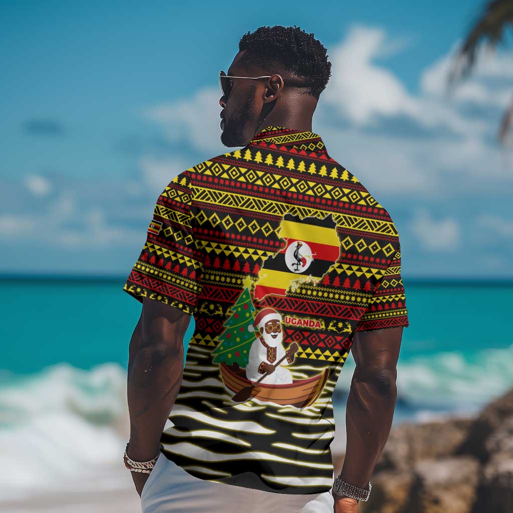 Uganda Christmas Hawaiian Shirt Santa in Canoe Christmas Tree Uganda Map Flag