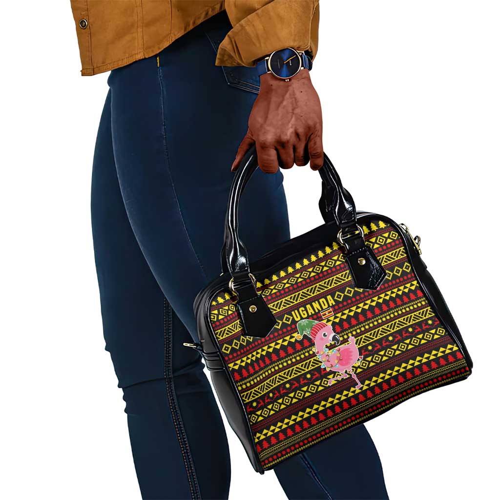 Uganda Christmas Shoulder Handbag Flamingo Lights Uganda Flag and Black Red Yellow