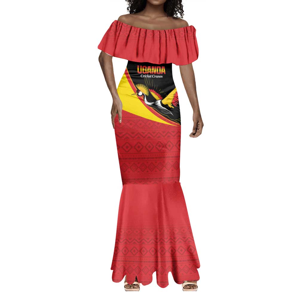 Afro Cricket Uganda Custom Mermaid Dress Go Cranes African Pattern