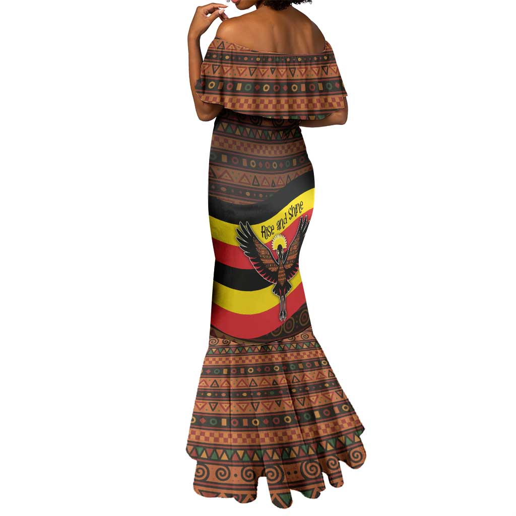 Uganda Mermaid Dress - Crested Crane and Rise and Shine Tribal Pattern Design