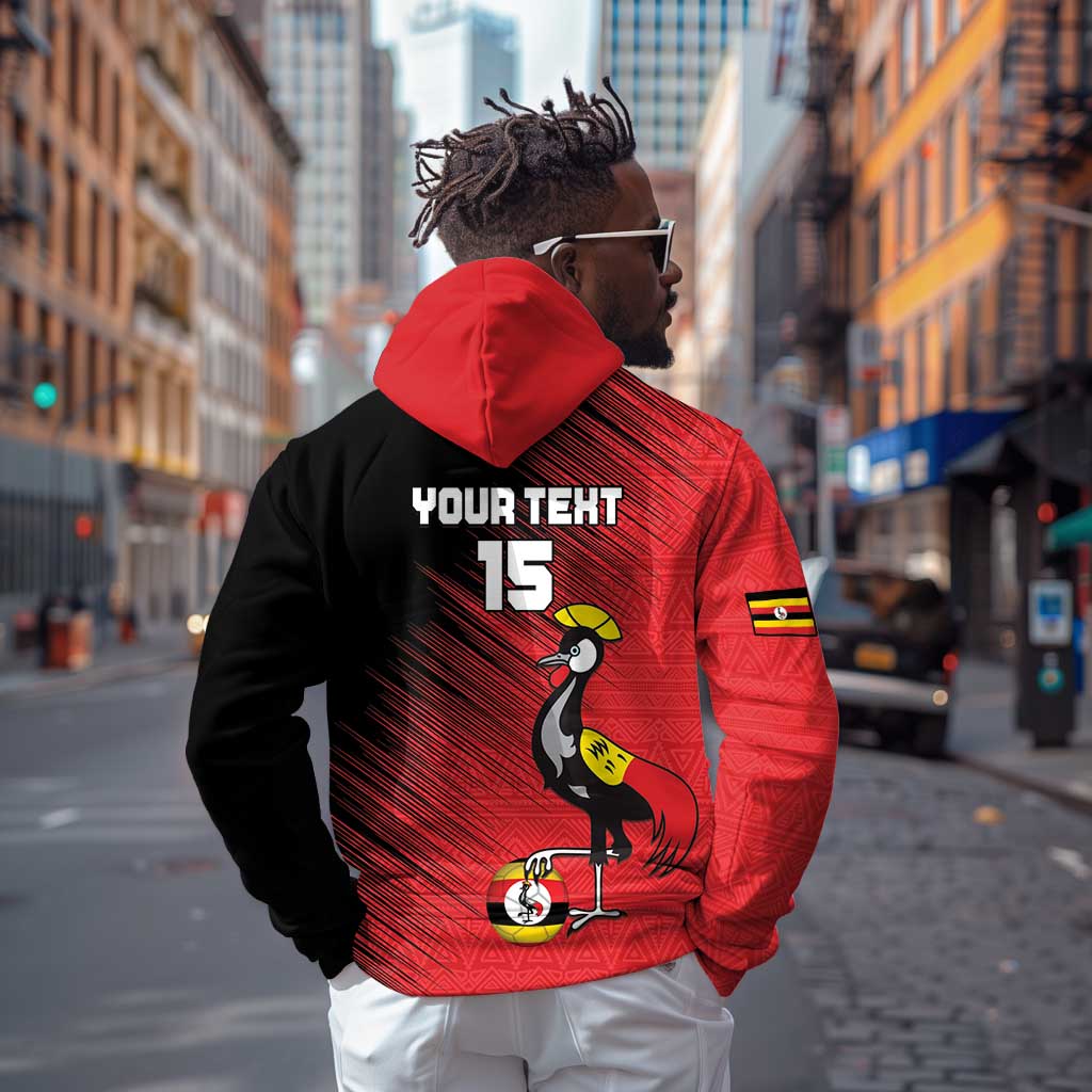 Uganda Football Custom Zip Hoodie African Pattern Mix Grunge Style - Red Color
