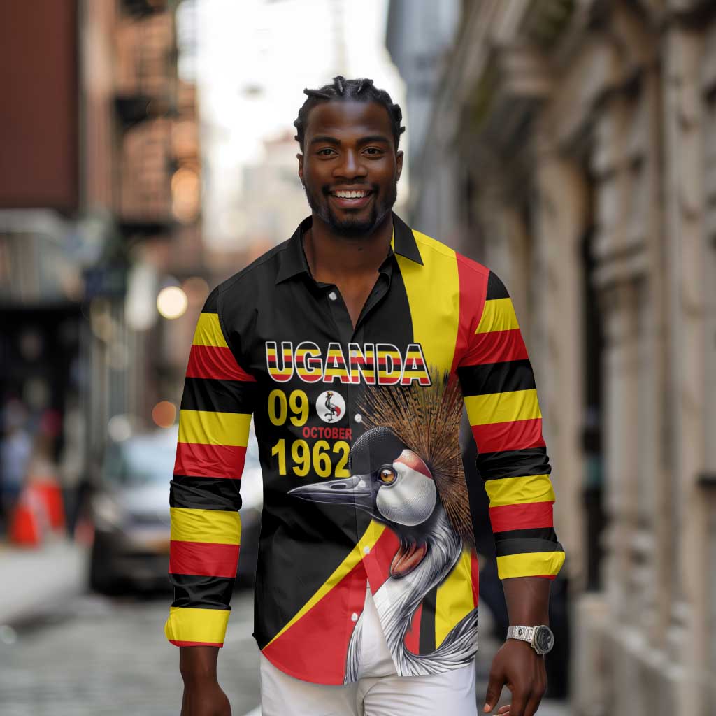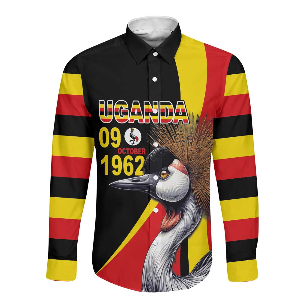 Uganda Independence Day with Crowned Cranes Long Sleeve Button Shirt