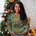 Buffalo Soldiers Christmas Ugly Christmas Sweater Blue Yellow Plaid Parade Illustration Design
